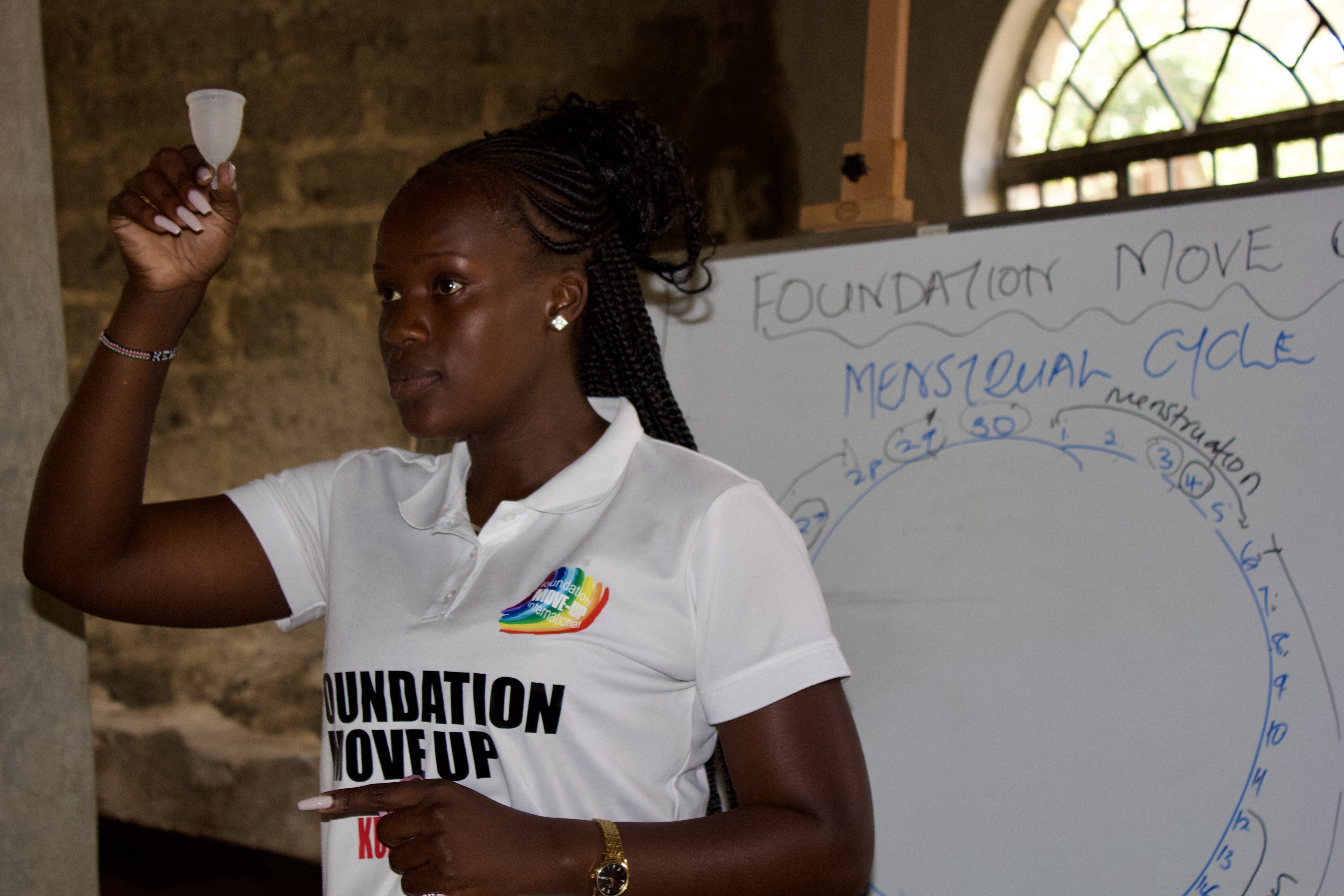 Foundation Move-Up is supporting girls and woman by giving out Menstrual Cups. A sustainable and ecological solution because 1 cup lasts for 10 years and does not give any waste than once in 10 years when the cup has to be changed. It is important that girls feel comfortable to speak freely during the menstrual classes so Foundation Move Up has trained a Menstrual Cup trainers who are giving classes about the use of the Menstrual Cup, everything about menstruation and very important about hygiëne. We are training trainers so that the cup can be distributed throughout Kenya and even accross the borders. Cups are given out in schools and sports facilities in the slums of Nairobi, Kenya and rural areas. Because menstruation is still quite taboo, we first have meetings with schools and for the younger girls also with the mothers so that they also receive all the information and their own menstrual cup. It means they can exchange information and experiences with their daughters. Let’s keep the girls in school, give them the freedom to join sports without worry and help us to stop menstruation poverty.